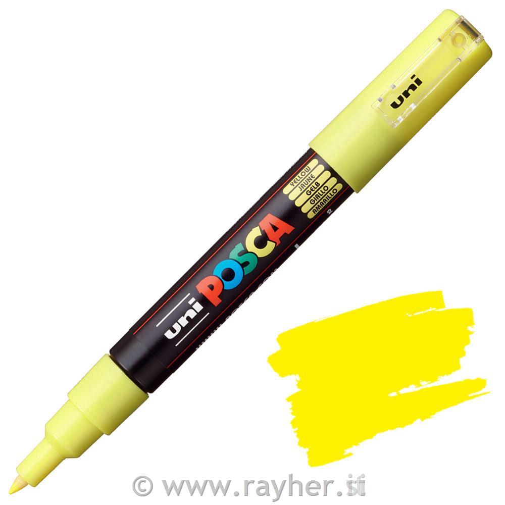 POSCA Uni flomaster; konica 0,7 mm bullet; rumen