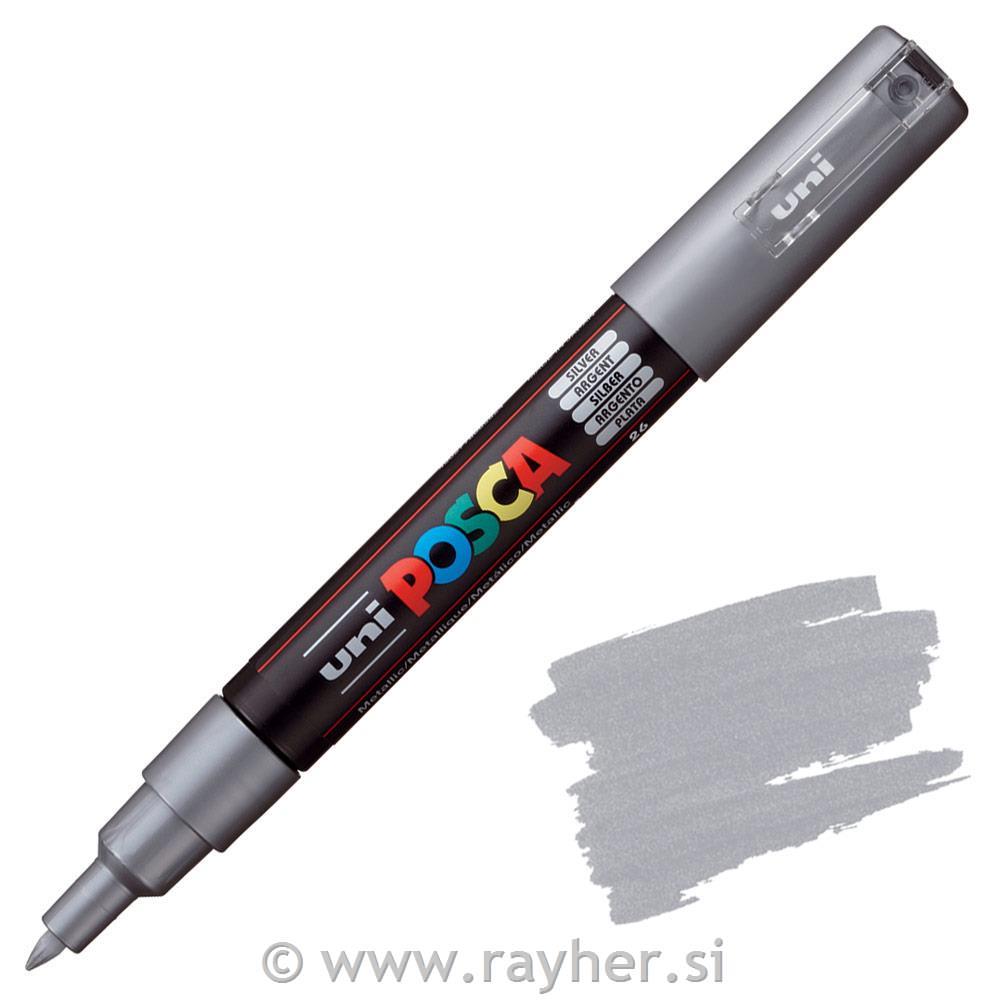 POSCA Uni flomaster; konica 0,7 mm bullet; srebrn