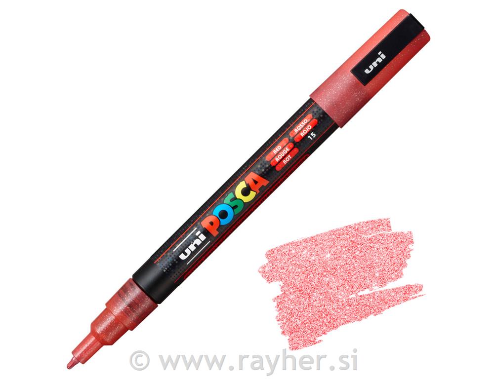 POSCA Uni flomaster; konica 0,9-1,3 mm; rdeč z bleščicami