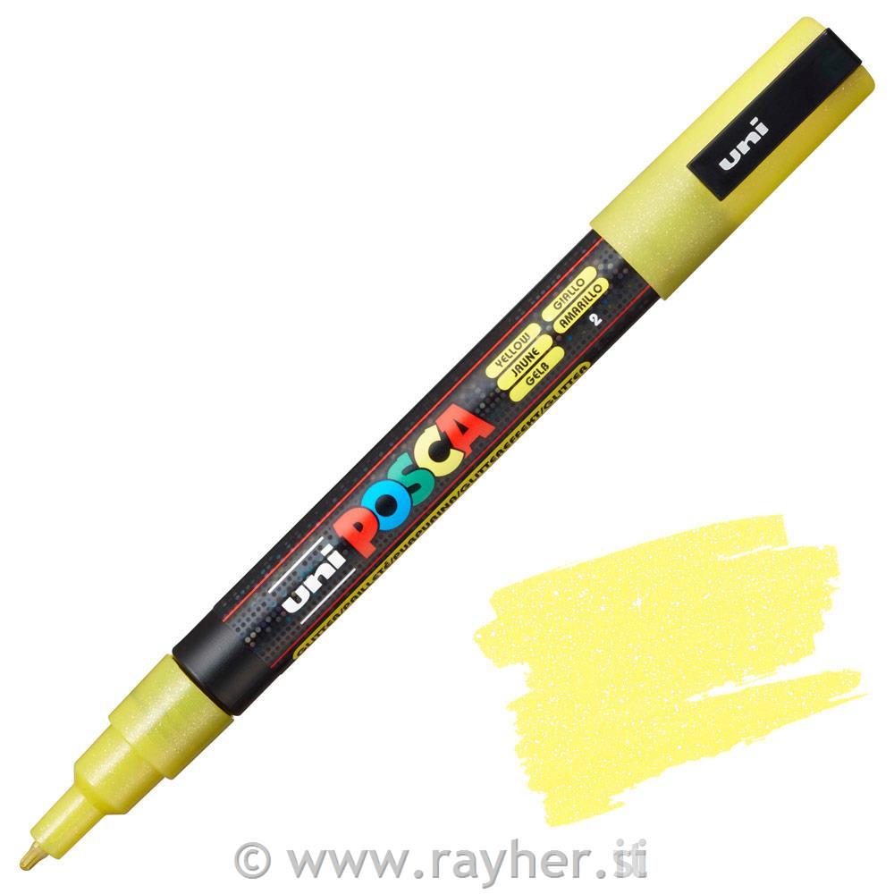 POSCA Uni flomaster; konica 0,9-1,3 mm; rumen z bleščicami
