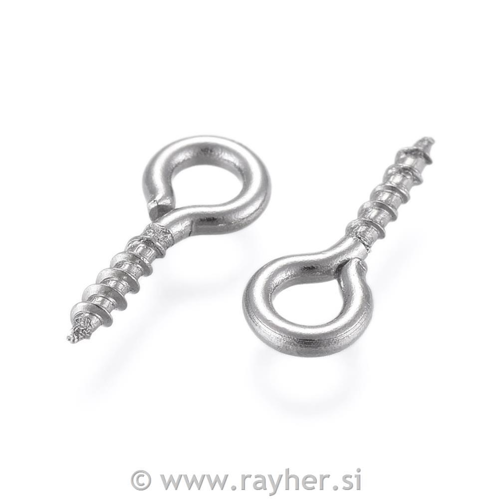 Vijaki z zanko, 10x4mm, srebrni iz nerjavečega jekla, set 10