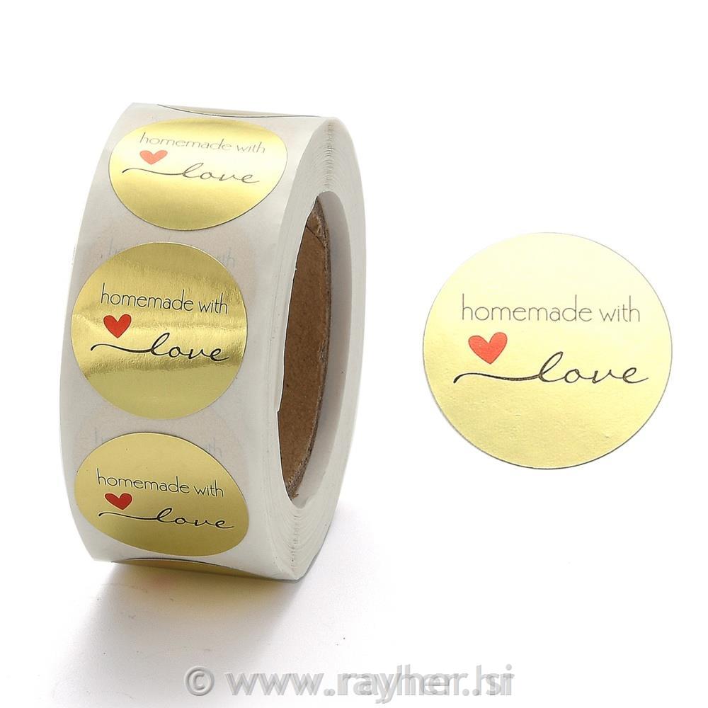 Nalepke "Handmade with Love" na kolutu, 500 nalepk