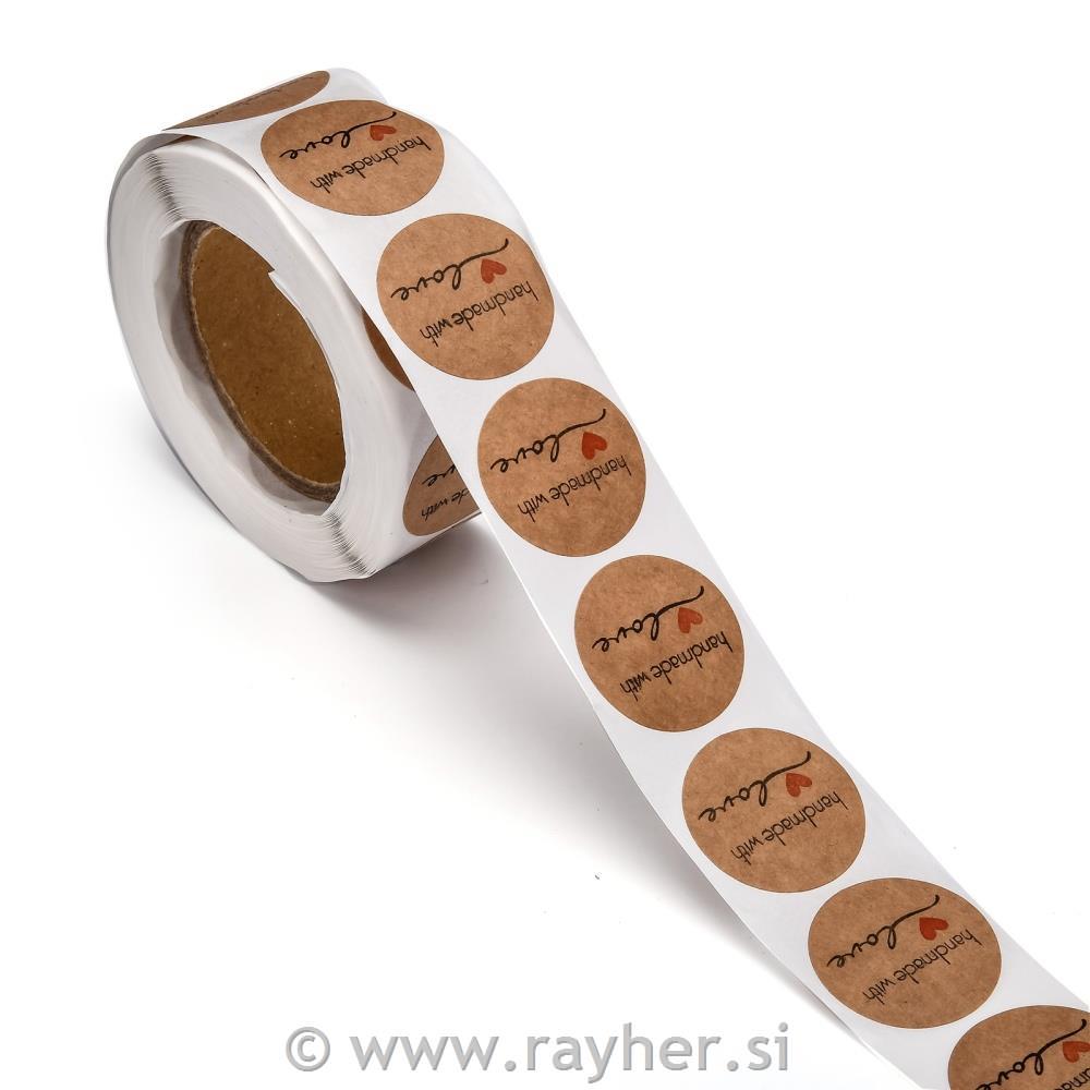 Nalepke "Handmade with Love" na kolutu, kraft barve, 500 nalepk