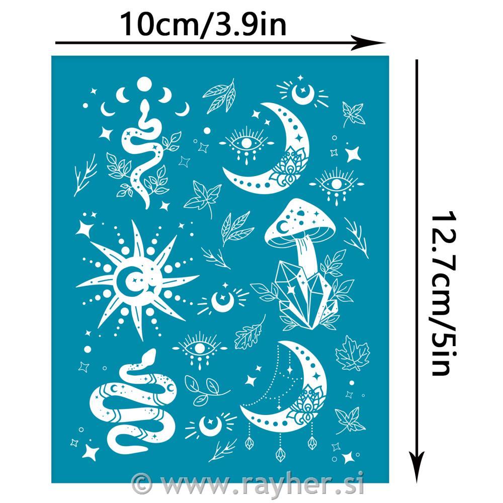 Silk screen šablona ( ne samolepilna) je pripravljena za uporabo in jo lahko vedno znova uporabljate na različnih površinah z različnimi vrstami barv. Tovrstne šablone uporabite za projekte iz tkanine (majice, hlače, pajkice, torbe, platno), lesa, polimerne gline ( FIMO, Premo,..), različne mase, keramiki, lončenini….