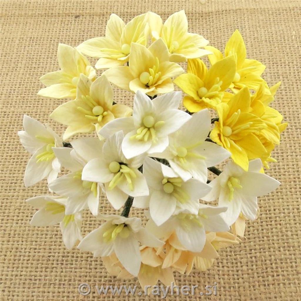 Izdelane ročno iz murvinega papirja na žičnatem steblu ( dolžina stebla je cca 7cm). Velikost cveta je cca 30cm.
