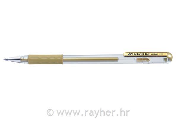 Pentel Roler Gel Metallic Hybrid Gel Grip K118; Zlat