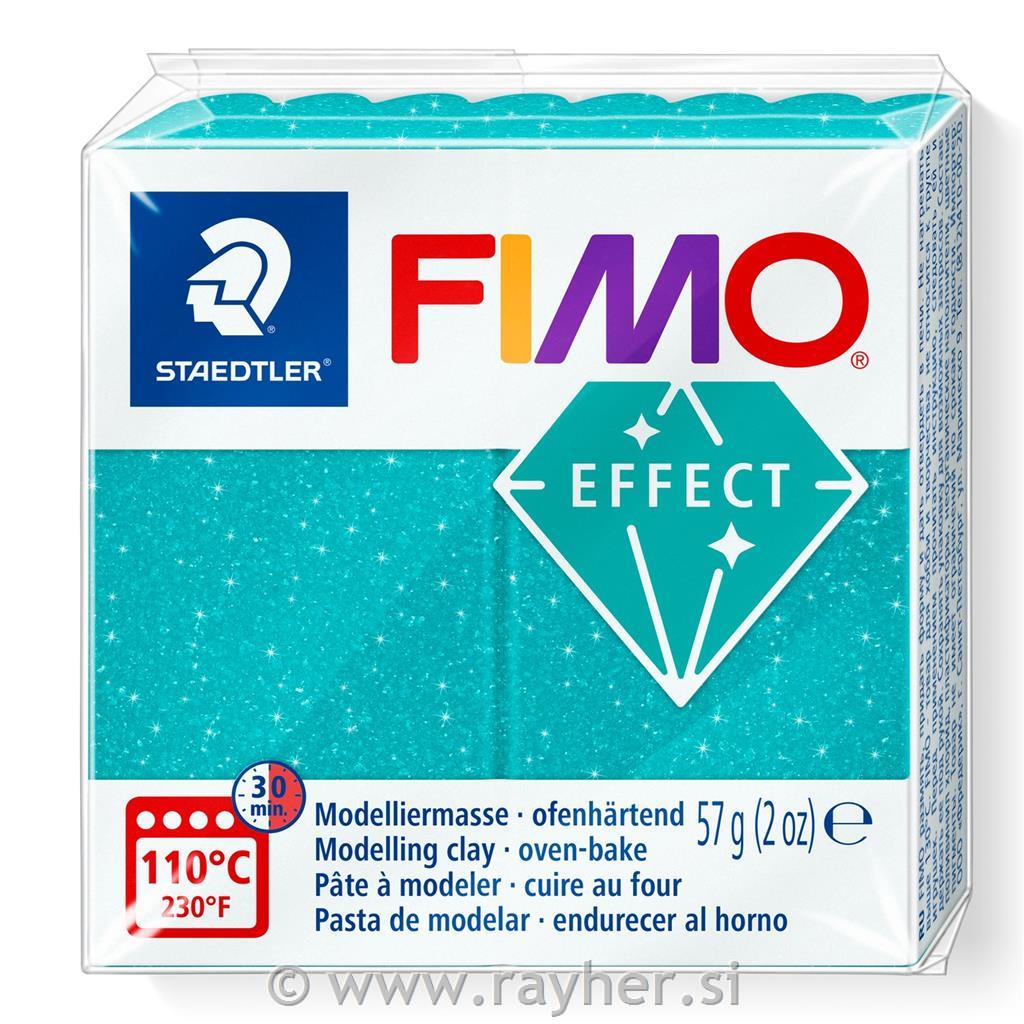 FIMO EFFECT je modelirna masa, ki je preprosta za uporabo in se lahko utrdi v domači kuhinjski pečici pri temperaturi 110°C. Čas utrjevanja je približno 30 minut. Z mešanjem osnovnih barv lahko dosežete poljuben odtenek, neutrjen FIMO lahko znova in znova pregnetete in preoblikujete. Utrjenemu izdelku se lahko doda FIMO in se ponovno utrdi, pod pogojem, da izdelek še ni bil barvan ali lakiran. Dokončan izdelek ni prepusten za vodo, lahko ga umijete.