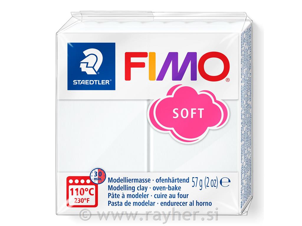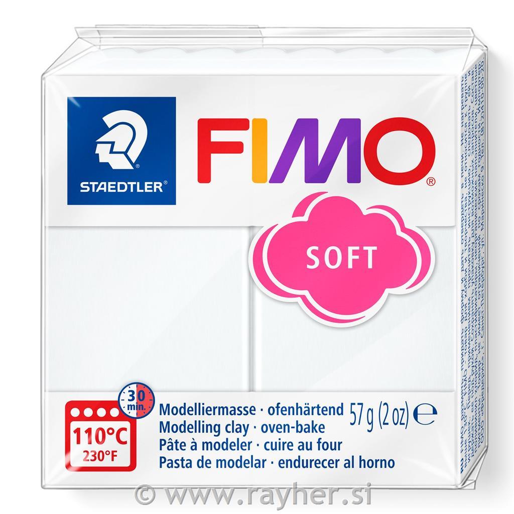FIMO SOFT je vsestranska modelirna masa, ki je preprosta za uporabo in se lahko utrdi v domači kuhinjski pečici pri temperaturi 110°C. Čas utrjevanja je približno 30 minut. Z mešanjem osnovnih barv lahko dosežete poljuben odtenek, neutrjen FIMO lahko znova in znova pregnetete in preoblikujete. Dokončan izdelek ni prepusten za vodo, lahko ga umijete.