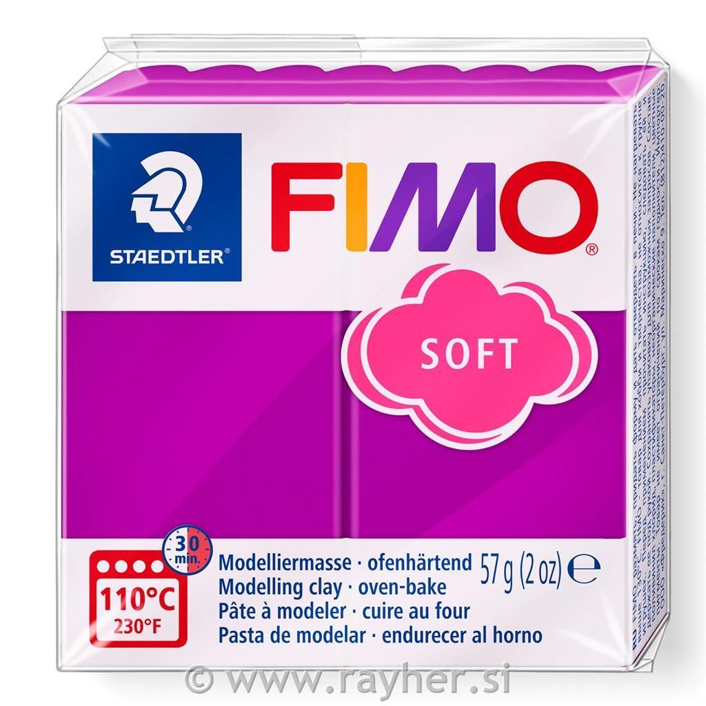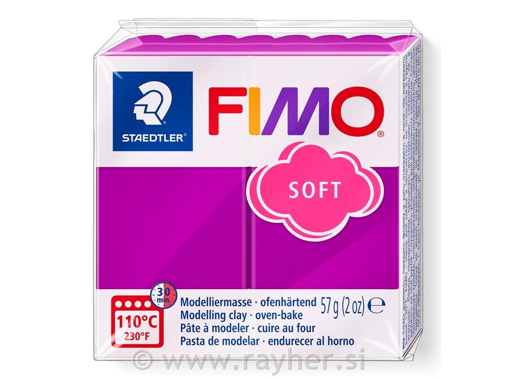 FIMO SOFT je vsestranska modelirna masa, ki je preprosta za uporabo in se lahko utrdi v domači kuhinjski pečici pri temperaturi 110°C. Čas utrjevanja je približno 30 minut. Z mešanjem osnovnih barv lahko dosežete poljuben odtenek, neutrjen FIMO lahko znova in znova pregnetete in preoblikujete. Dokončan izdelek ni prepusten za vodo, lahko ga umijete.