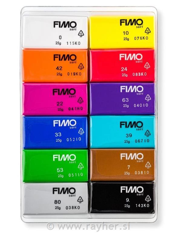 FIMO Soft set Basic vsebuje 12x maso , vsaka po 25g.