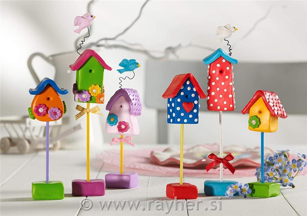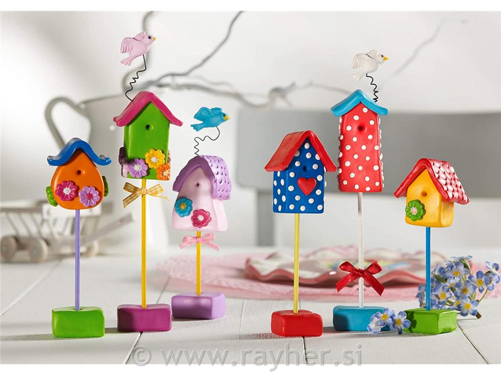 Fimo je vsestranska polimerna modelirna masa, ki je preprosta za uporabo in se utrdi v domači pečici pri temperaturi 110C. Čas utrjevanje je približno 30 minut.