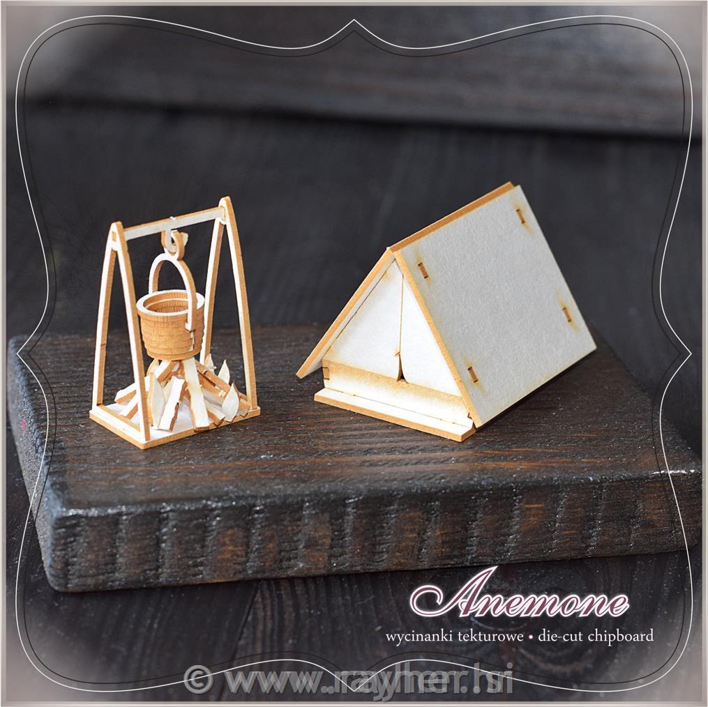 dim.:Šotor - 4,0x4,0x5,3cm, ognjišče - 4,7x2,0x3,0cm