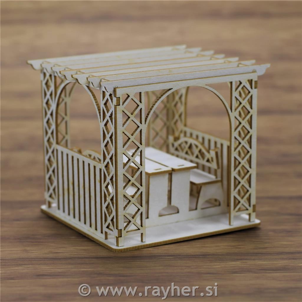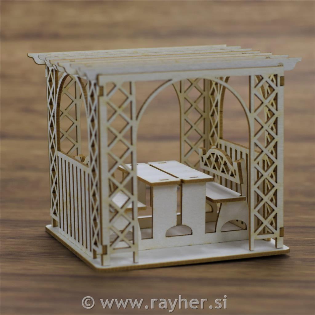 Izrez iz lepenke, 3D, Pergola z vrtno garnituro
