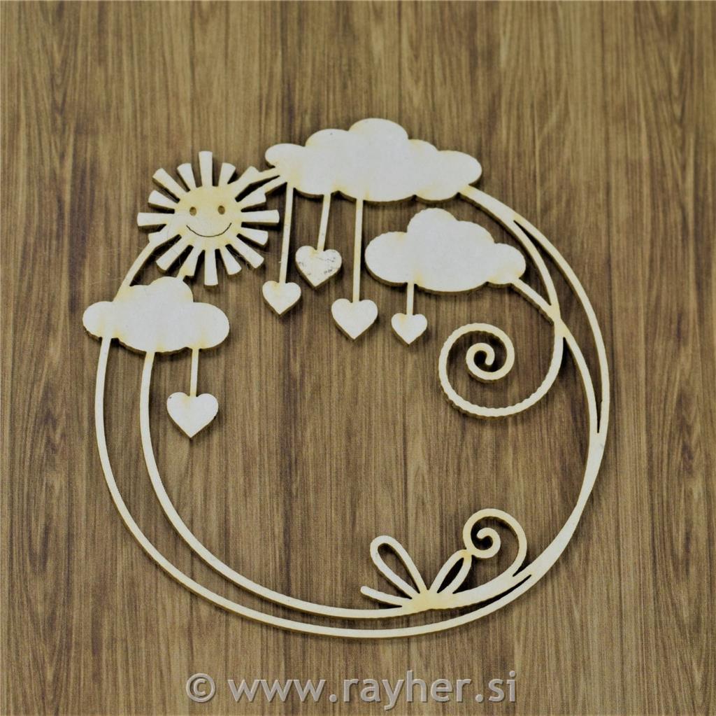Izrez iz lepenke, Oblaki s sončkom, srčki, pentljo