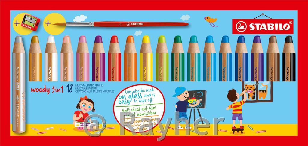 Stabilo Woody barvice set 18+ šilček + čopič