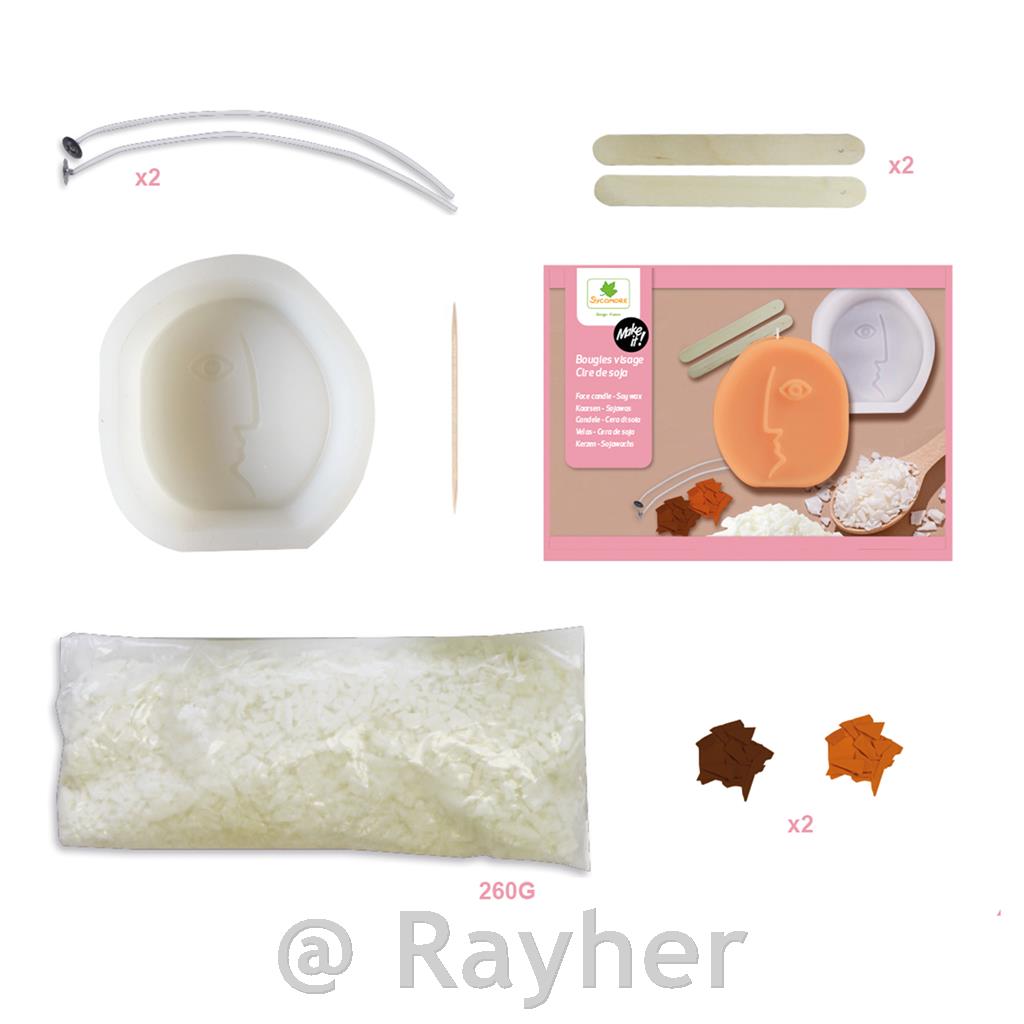 Ta lepa škatla vsebuje vse, kar potrebujete za izdelavo 2 originalnih, trendovskih sveč. Vsebuje: 1 kalup, 2 barvili, 260 g sojinega voska v prahu, 2 stenja, 2 leseni palčki in 1 komplet navodil.