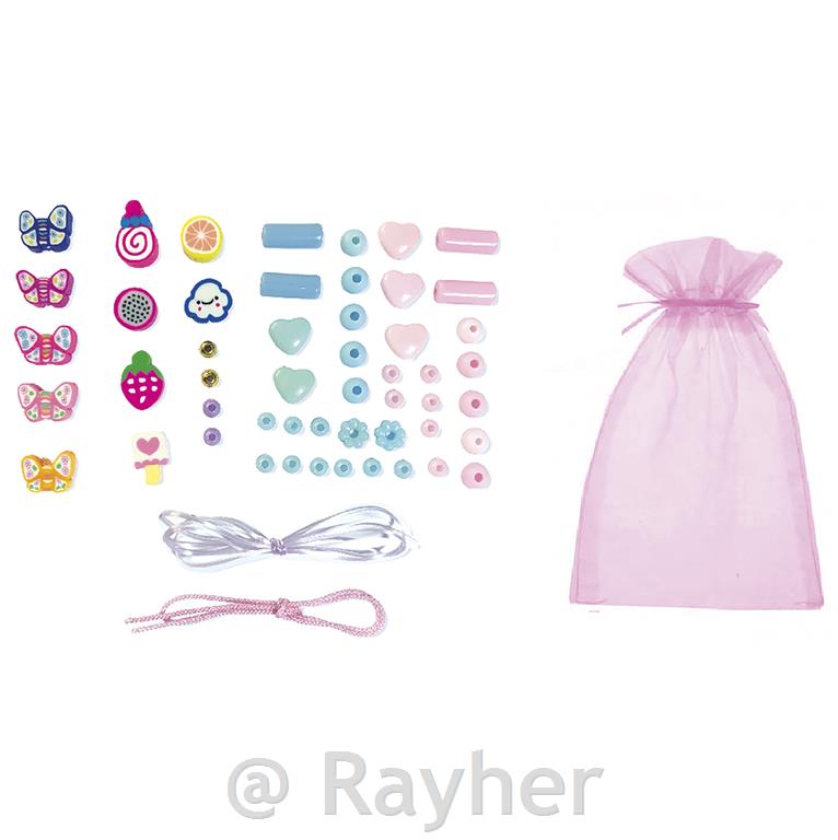 Živahna majhna škatlica za ustvarjanje lastnega unikatnega nakita!_x000D_ Vključuje svetle perlice, polimerne perlice, nit, 2 vrečki iz organze in 1 knjižico z navodili.