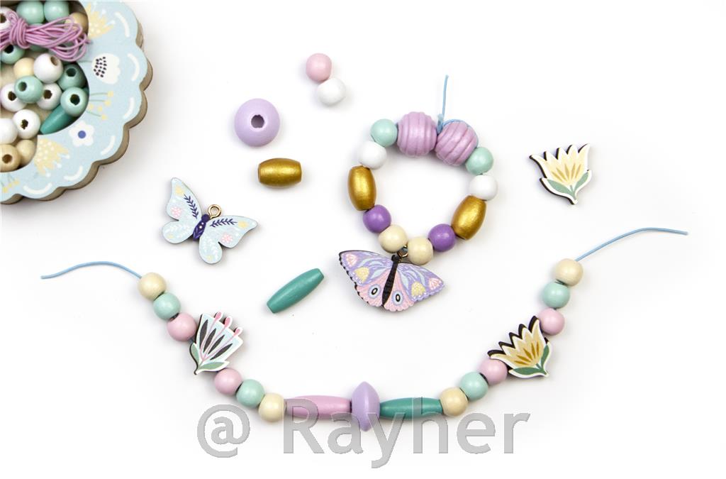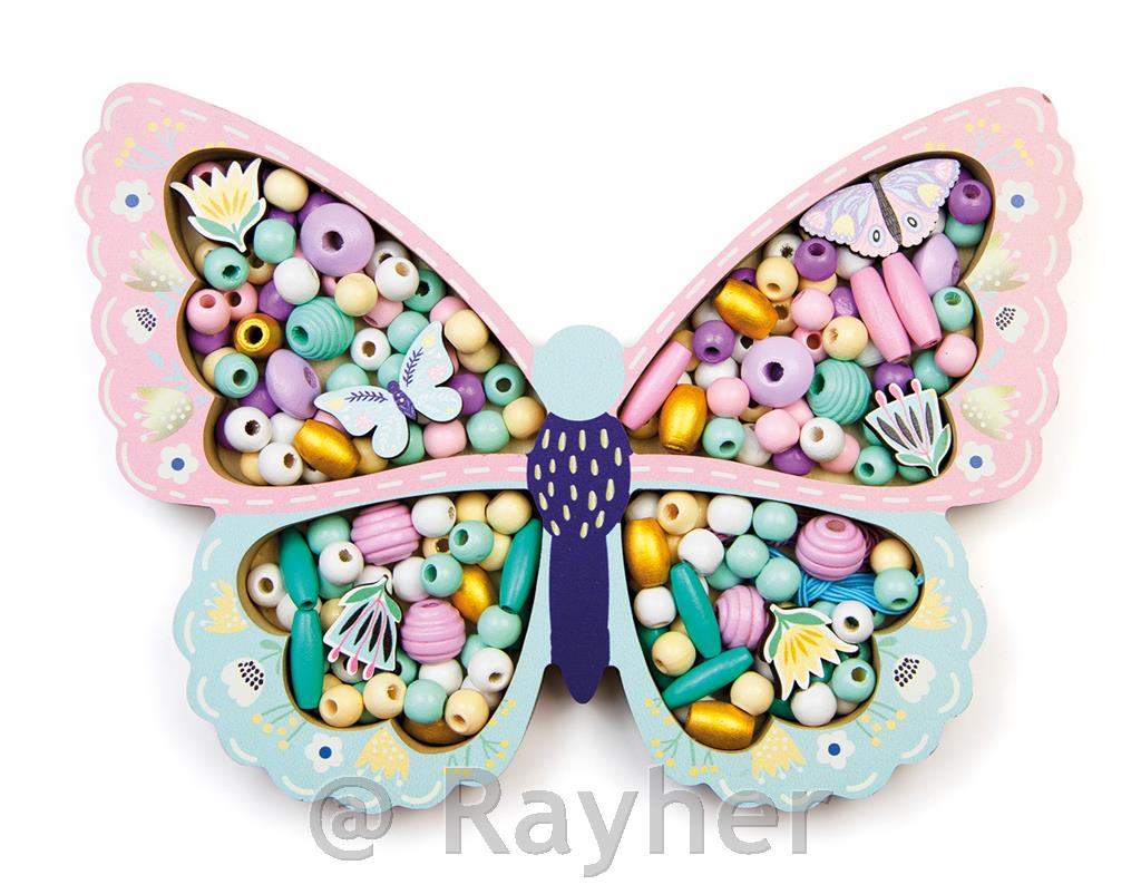 Izvirna škatlica v obliki metulja, ki vsebuje lepe perlice v pastelnih in zlatih barvah za ustvarjanje čudovitega nakita: ogrlic, zapestnic itd. Priložena je 6 metrov niti v lepi škatlici, ki služi tudi kot škatlica za nakit, in organza vrečka za shranjevanje perlic.
