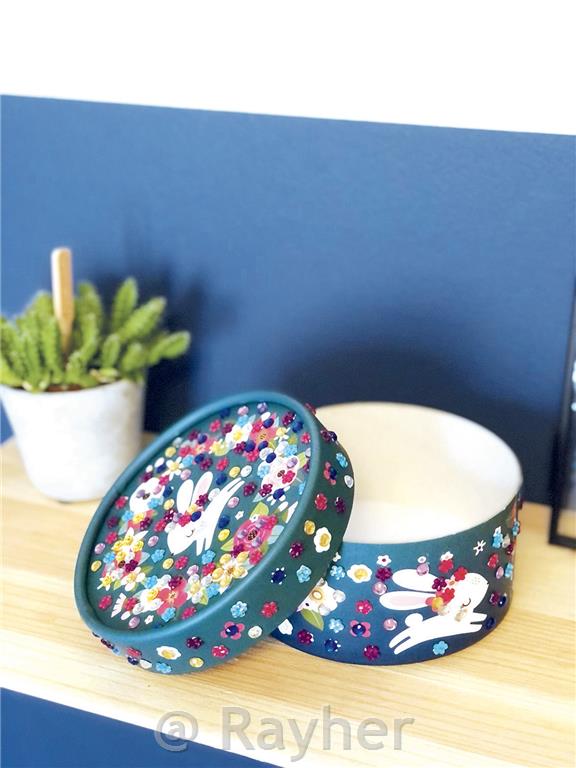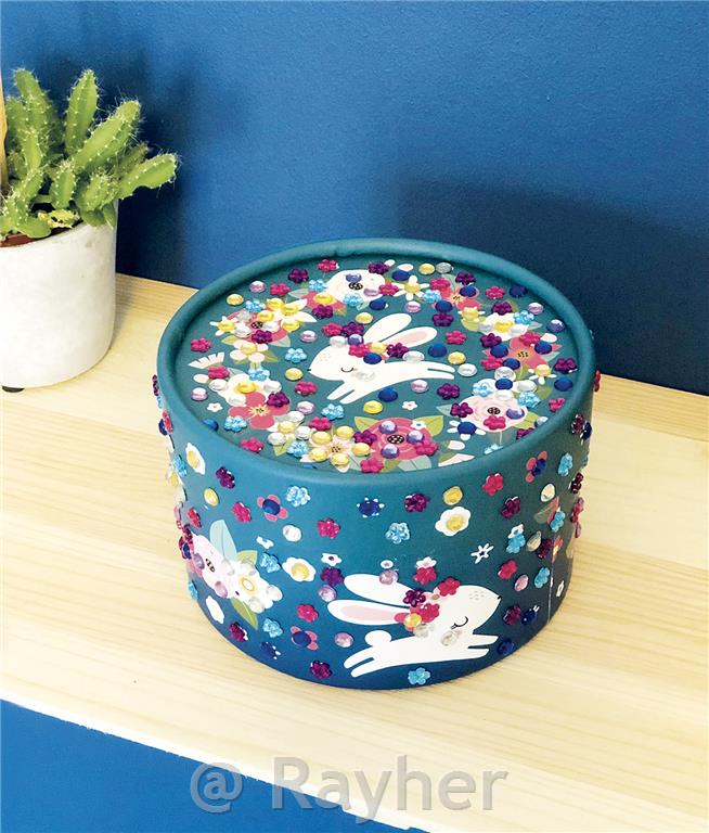 Okrasite čudovito okroglo škatlico, preprosto nalepite penaste mozaike in bleščeče dragulje na ustrezne grafike! Vsebuje: 1 okroglo škatlico (11,5 x 11,5 x 7 cm), več kot 350 draguljev in 1 navodilo za uporabo.