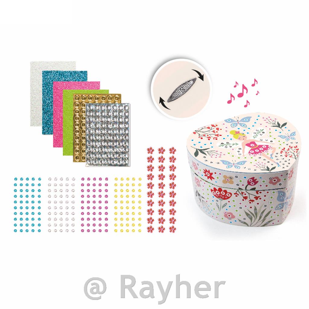 Okrasite čudovito glasbeno skrinjico v obliki vile balerine, preprosto nalepite majhne dragulje in bleščeče dragulje na ustrezne grafike in že ste pripravljeni!
