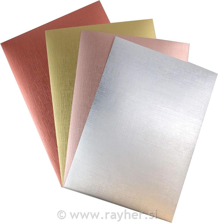Set vključuje 2 kartona naslednjih barv: zlate, srebre, rose gold in bakrene.