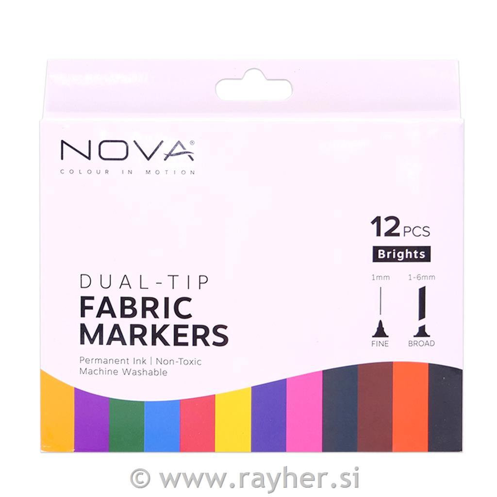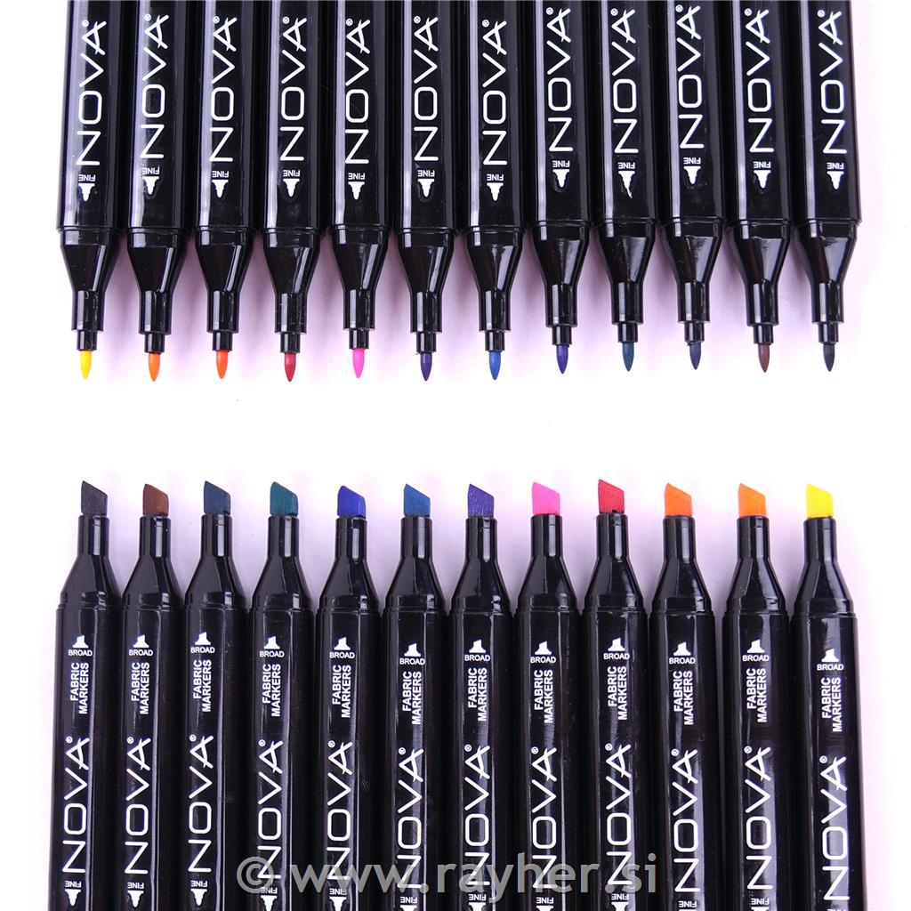 Set vsebuje 12 flomastrov za tekstil ( fina konica za detajle, debelejša konica za barvanje ali šabloniranje).