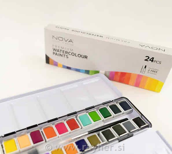 NOVA akvarelne barve 24 tabl.+ 2 čopiča