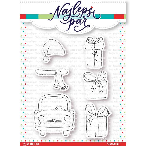 Velikosti nekaterih štampiljk so sledeče: avto 4,6×4,8 cm; kapa 2,6×2,6 cm; šal 3,8×2,5 cm; darila 2,9×3,9 cm; 2,7×3,2 cm; 2,2×3,5 cm