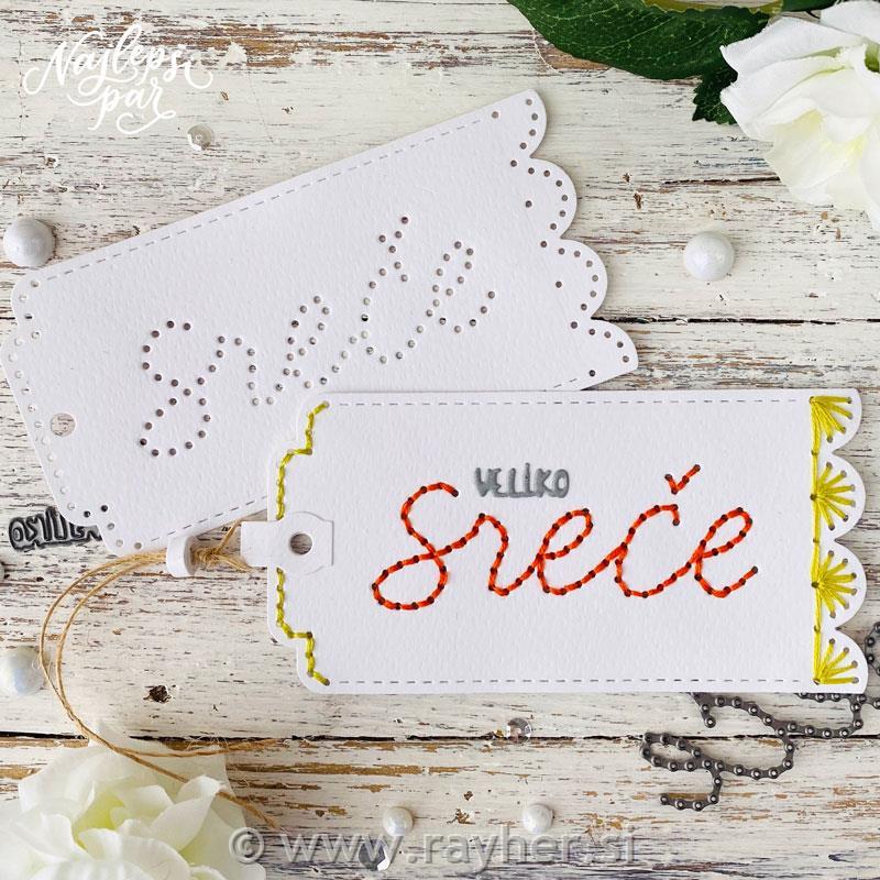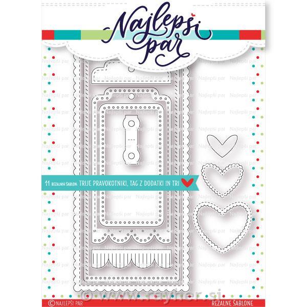 rayher.si Papir in pripomočki Sizzix, Marianne design, Ultimate Pro, SewEasy, Spirale, Quilling Sizzix, Marianne Design, Memory Box, LeaBilities NAJLEPŠI PAR - rezalne šablone, štampiljke, šablone, dodatki Rezalna šablona Amerikanka V kompletu je 11 rezalnih šablon: trije pravokotniki, tag z dodatki in tri srca.Velikosti nekaterih šablon: pravokotniki 21×9 cm, 19,5×7,5 cm, 9,5×5 cm; tag 12,1×6,2 cm; srca 5,6×4,8 cm, 4,5×3,7 cm, 3,2×2,4 cm Aktualna cena:21,49 € Šifra artikla:TZB361 Blagovna znamka:Najlepši par – Tina Baša Zaloga: na zalogi Dodaj v košarico kos