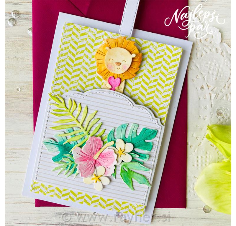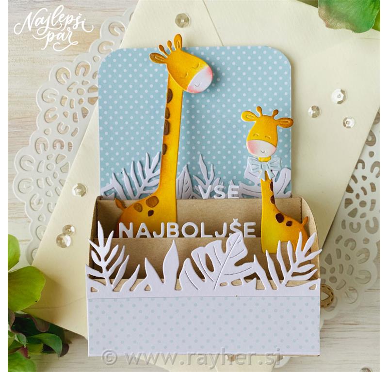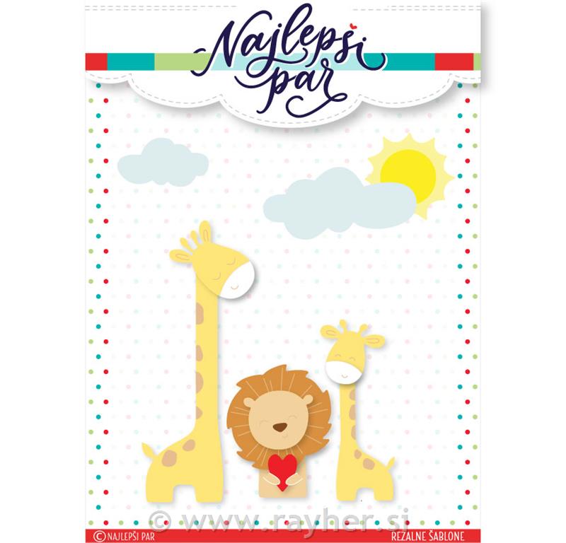 V kompletu je 19 rezalnih šablon. Z njimi lahko sestavimo dve žirafi in leva, poleg pa so tudi rezalne šablone, ki izrežejo drobne dodatke za živalice in pa sonce ter dva oblaka.