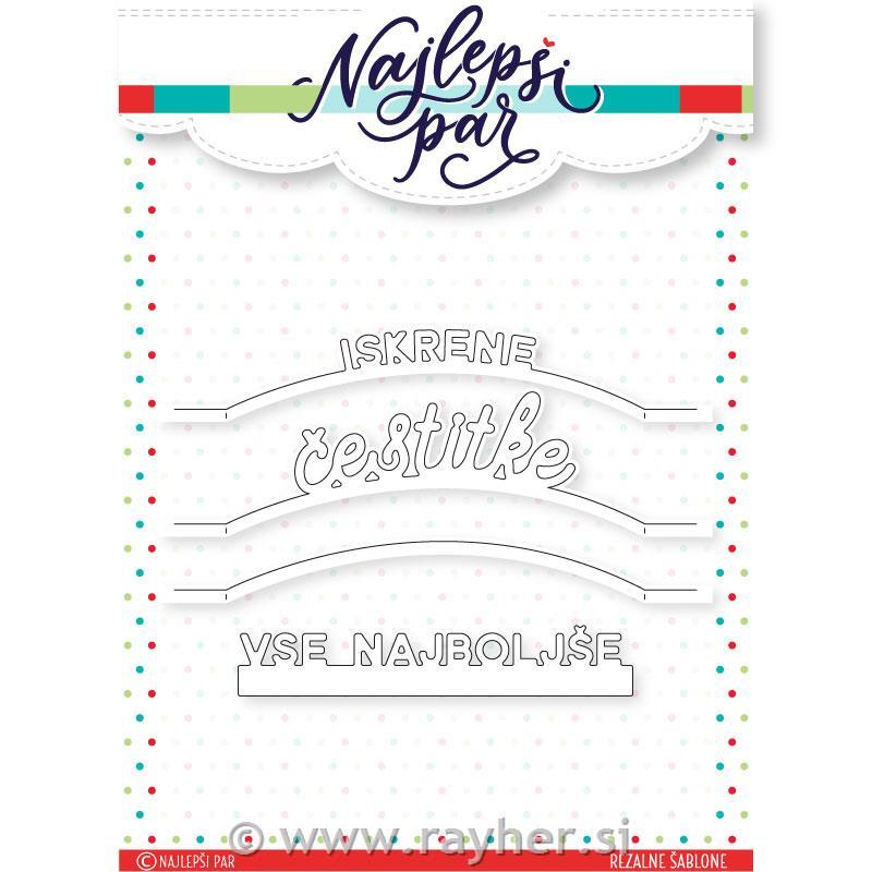 Velikosti: iskrene 1,8×10,8 cm, čestitke 2,9×10,8 cm, vse najboljše 1,5×8,2 cm