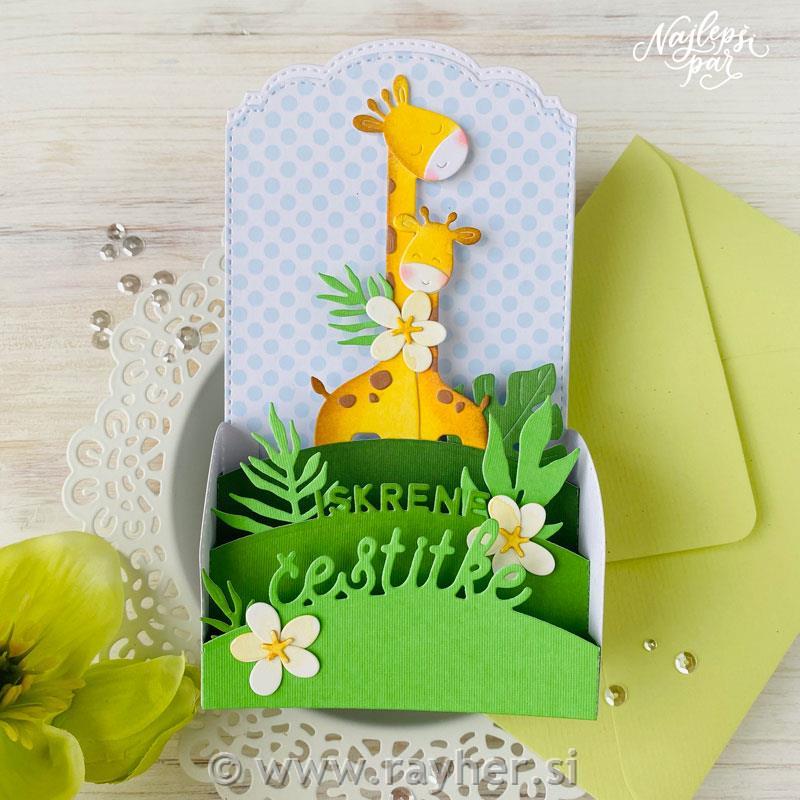 V kompletu je 5 rezalnih šablon, s katerimi lahko dodamo voščilo na Pop-up stopničke