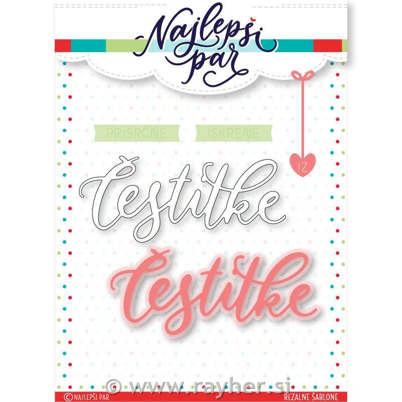 V kompletu je 7 rezalnih šablon. Komplet nudi veliko kreativnih možnosti …tanjši izrez čestitke lahko uporabljamo samostojno ali pa ga zalepimo na debelejši izrez in tako dobimo senco. Izrez za senco pa je primeren tudi za samostojno uporabo. V kompletu sta tudi napisa na zastavicah in pa srce z vrvico, ki služijo za dodatno okrasitev voščila. Obroba, ki ima obliko voščila pa nam pomaga pripraviti zanimive žepke.