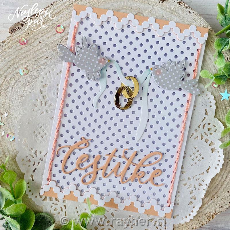 Velikosti: čestitke 8,6×3,6 cm; obroba 8,9×3,9 cm; prisrčne 3,6×0,7 cm