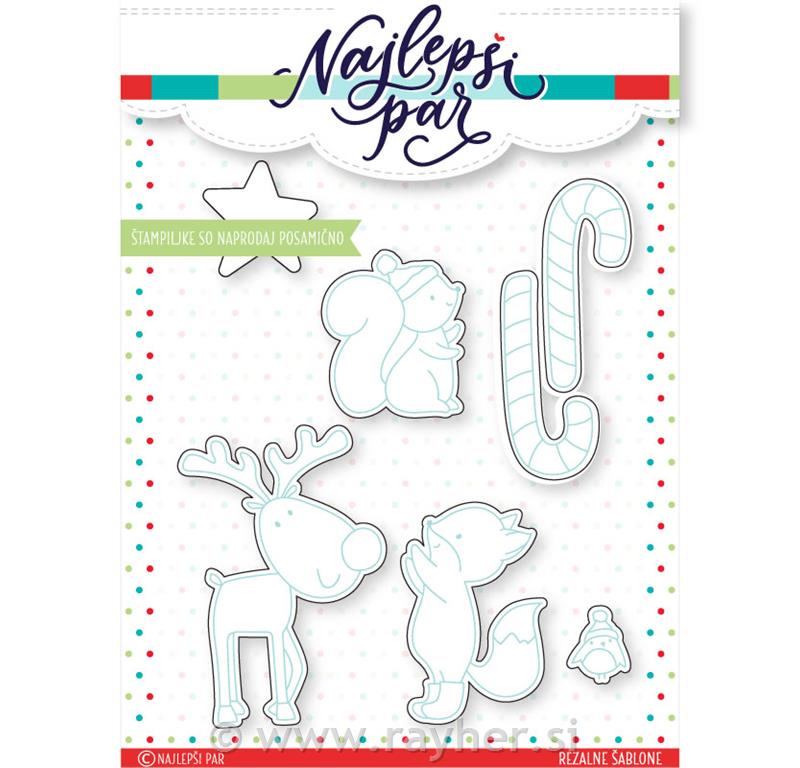 V kompletu je 12 rezalnih šablon s katerimi izrežemo 6 odtisov iz istoimenskega kompleta štampiljk. www.rayher.si/... Preostale rezalne šablone pa nam izrežejo ljubke dodatke za popestritev.