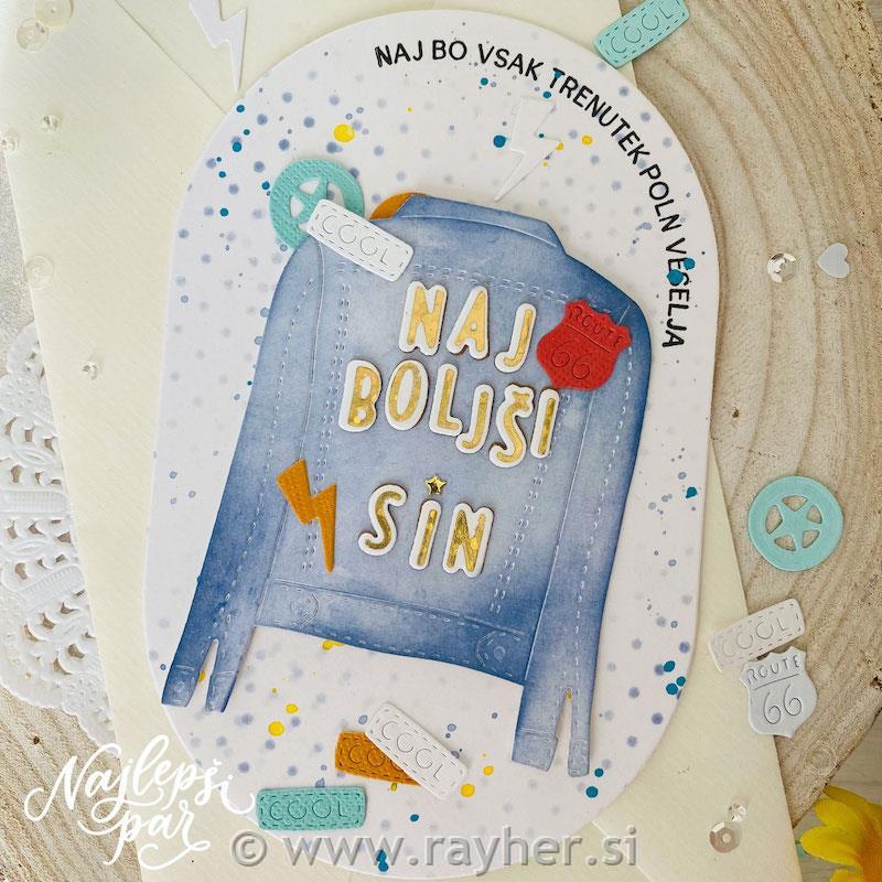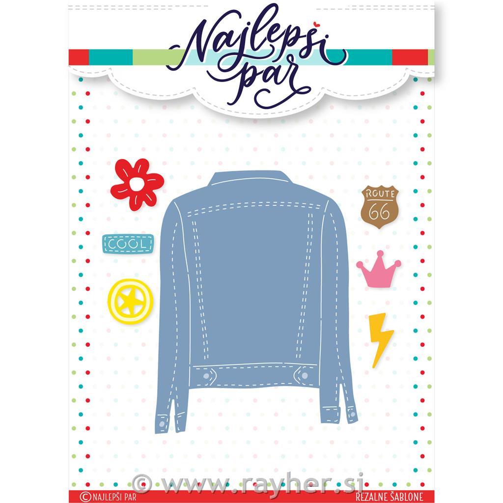 V kompletu je 7 rezalnih šablon. Največja šablona izreže jakno, šest manjših šablon pa našitke, s katerimi jo lahko okrasimo.