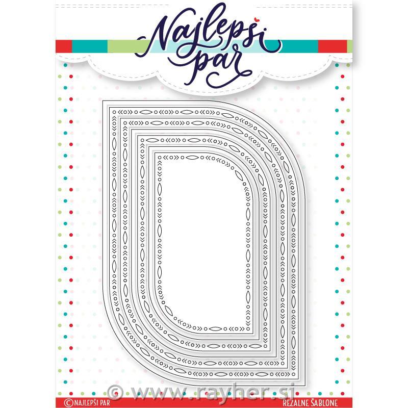 rayher.si Papir in pripomočki Sizzix, Marianne design, Ultimate Pro, SewEasy, Spirale, Quilling Sizzix, Marianne Design, Memory Box, LeaBilities NAJLEPŠI PAR - rezalne šablone, štampiljke, šablone, dodatki Rezalna šablona Lepi pravokotniki V kompletu je 7 rezalnih šablon, štirje pravokotniki imajo dekorirani rob, trije izrezi pa so običajni.Največji pravokotnik meri 10,5 x 14,8 cm, najmanjši pa 5,1 x 9,4 cm. Aktualna cena:18,99 € Šifra artikla:TZB559 Blagovna znamka:Najlepši par – Tina Baša Zaloga: na zalogi Dodaj v košarico kos