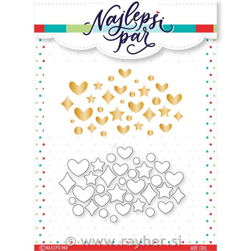 rayher.si Paper and Accessories Sizzix, Marianne design, Ultimate Pro, SewEasy, Cinch, BinditAll, Quilling Sizzix, Marianne Design, Memory Box, LeaBelities Decorative borders Hot foil in šablona Mini mix V kompletu je šablona za nanos folije in rezalna šablona, ki izreže drobne okrasne motive.Velikost vseh okraskov skupaj je 3,4 x 7,8 cm. Sale price:8.99 € SKU:TZB571 Brand:Najlepši par – Tina Baša Stock: on stock Add to basket kos