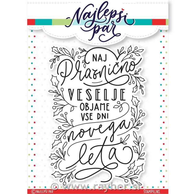 V kompletu je ena večja štampiljka velikosti 8,4 x 12,2 cm in dve manjši voščili.