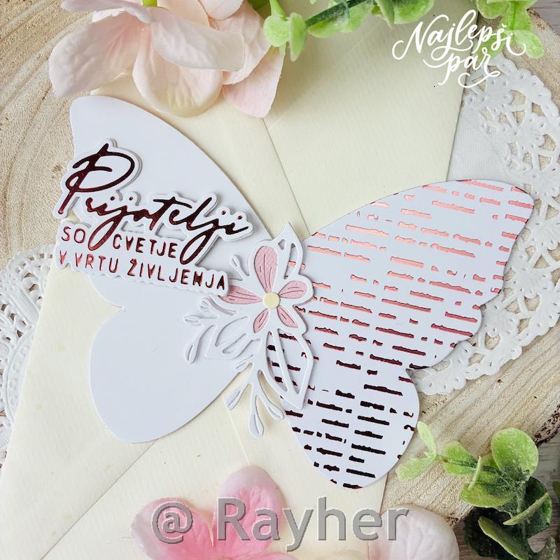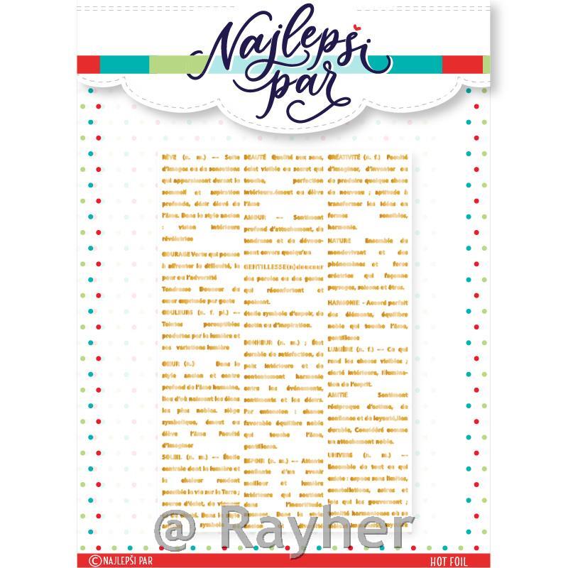 V kompletu je šablona za nanos folije, ki ustvari lepo ozadje z besedilom.