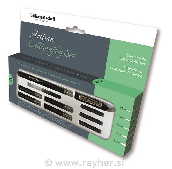 Komplet Art Pen nalivnih peres Artisan Calligraphy vsebuje pet konic debeline 0,9, 1,2, 1,4, 1,8 in 2,1 mm, ki so primerne za pisanje v kaligrafskem slogu Italic, Roman Round Hand, Uncial in druge sloge kaligrafije. Poleg konic set vsebuje še 5 kartuš s črnilom in pretvornik črnila za uporabo ustekleničenih črnil na vodni osnovi.