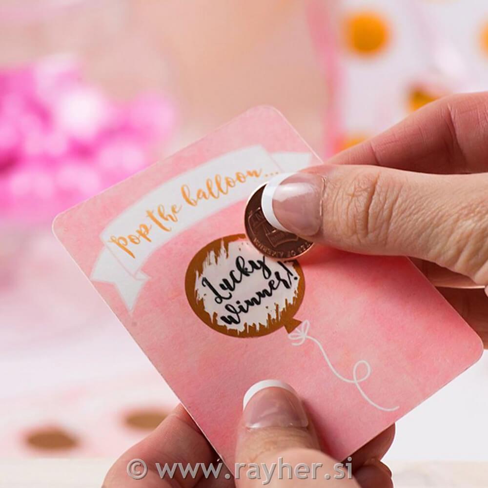 Preprosto prelepi besedilo, ki ga želiš začasno skriti na navaden kos papirja (ali drugega materiala). Natisnjeno besedilo ali slika ostane pokrita, dokler ne postrgaš neprosojno zlato območje, da razkriješ sporočilo. Zabava za ustvarjanje iger, promocijskih materialov ali obvestil o presenečenju, ki jih lahko skriješ, dokler jih ne želiš razkriti.