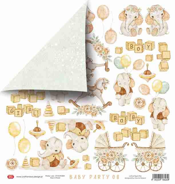 Scrapbooking papir 30x30, 250gsm, Baby Party 08