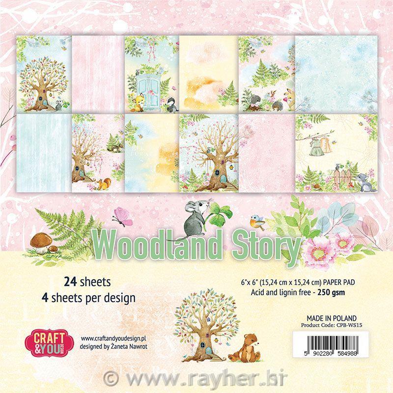 Prikupni scrapbooking papirji iz kolekcije Woodland Story so primeri za prav vse letne čase in različne priložnosti. Iz njih lahko izdelate vošilnice, čestitke, vabila, zahvale ali pa sporočilo, da nekoga pogrešate. Kvaliteten papir debeline 250gsm vam omogoča, da ga lahko uporabite tudi v napravah za rezanje s šablonami ( Gemni, Big Shot,..), režete s škarjami,... V setu je 24 papirjev, velikosti 15.2x15.2cm.