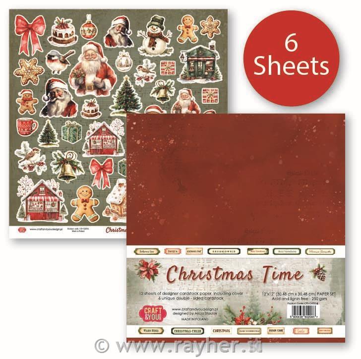 Set papirjev, 30x30cm, Christmas Time, set 6