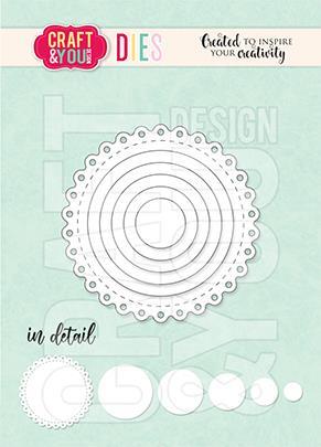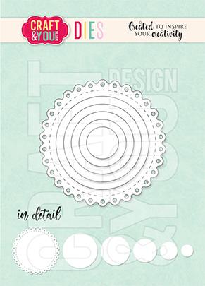 Set vsebuje 6 rezalnih šablon. Dimenzije: približ.: mini doily premer 4,5 cm, krogi od manjšega do večjega. : 1,1 cm, 1,7 cm, 2,5 cm, 2,8 cm, 3,4 cm