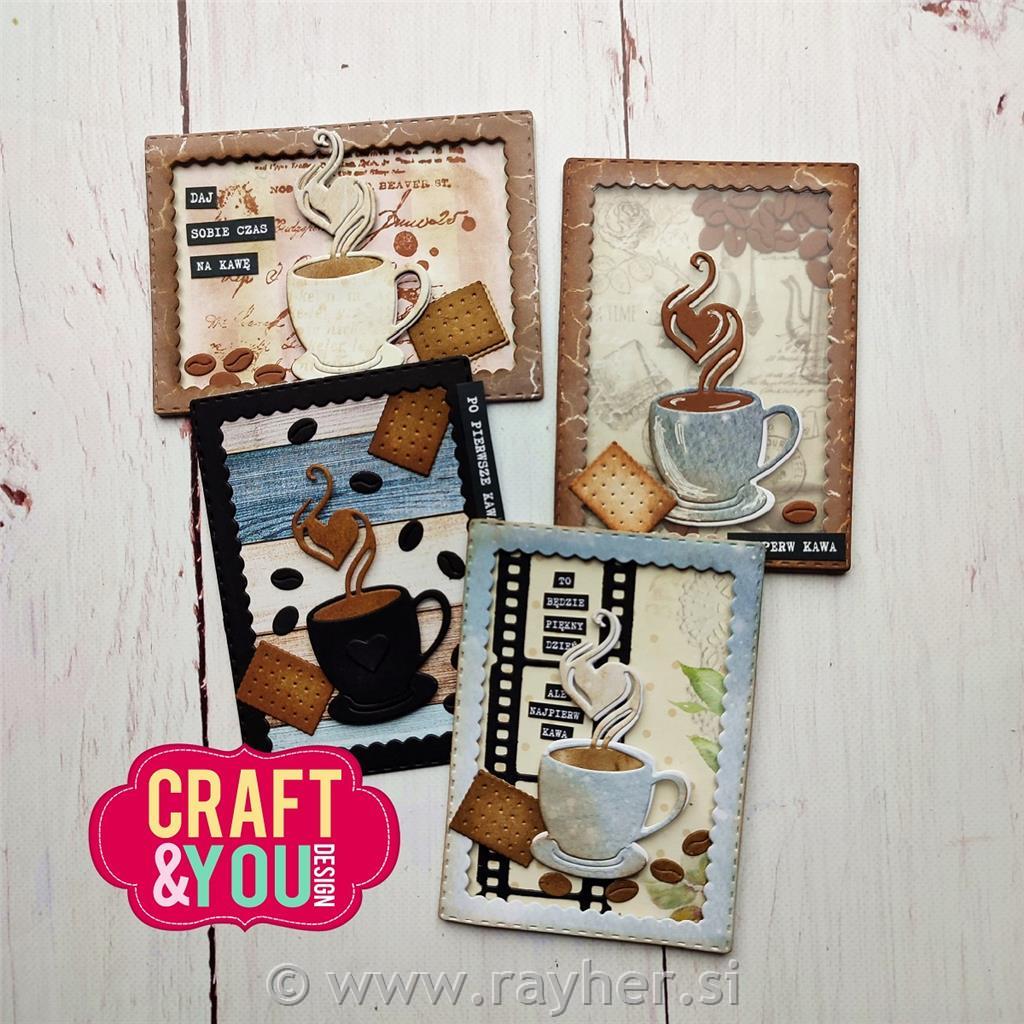 Rezalne šablone Craft&You, Okvir, skodelica, kava