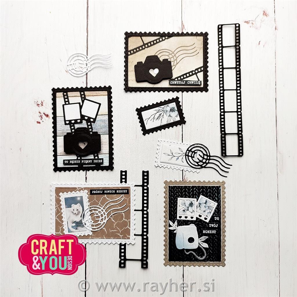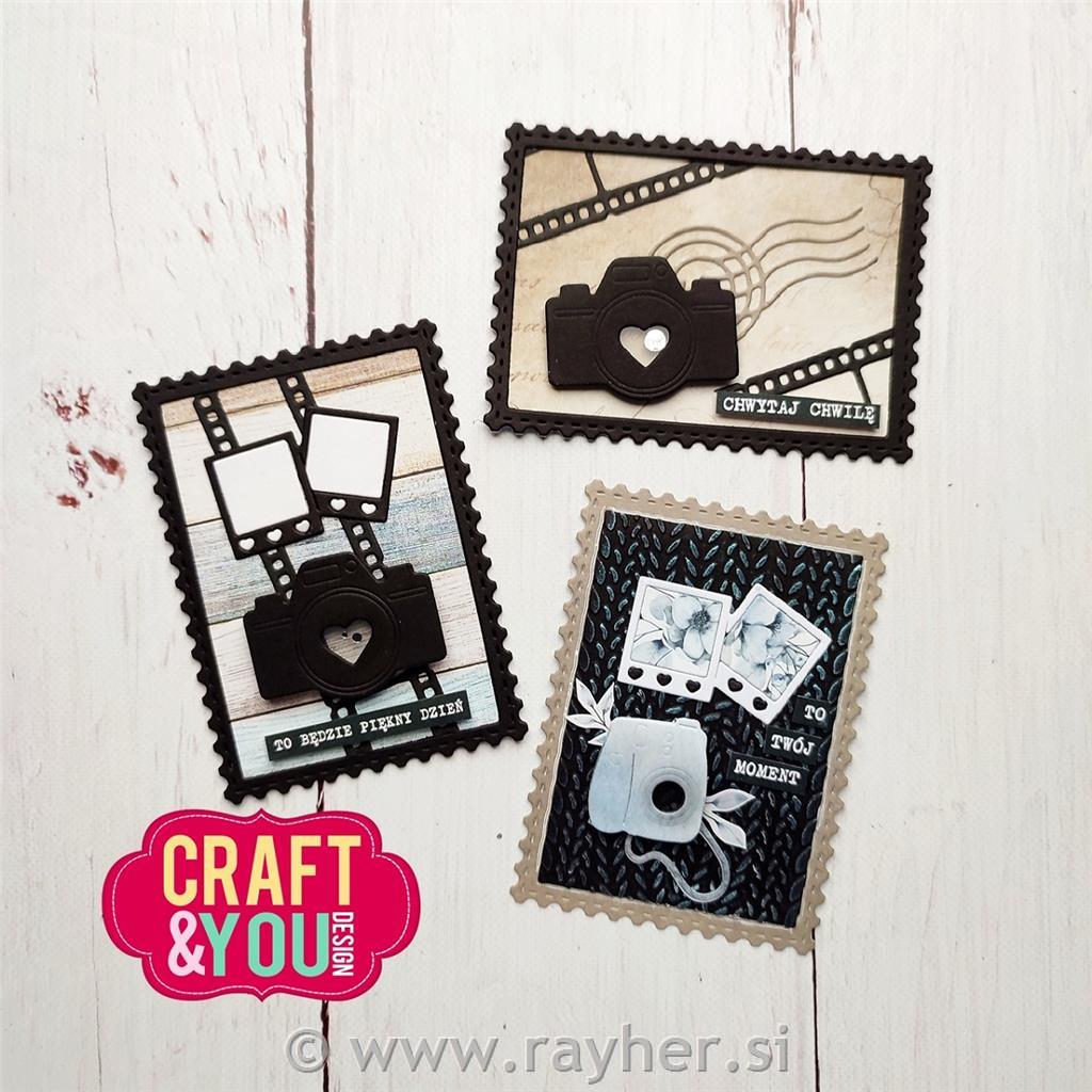 V paketu je 5 rezalnih šablon, približne mere: največji okvir za znamko: 9x6,5 cm, najmanjši okvir za znamko: 4,3 x 3 cm