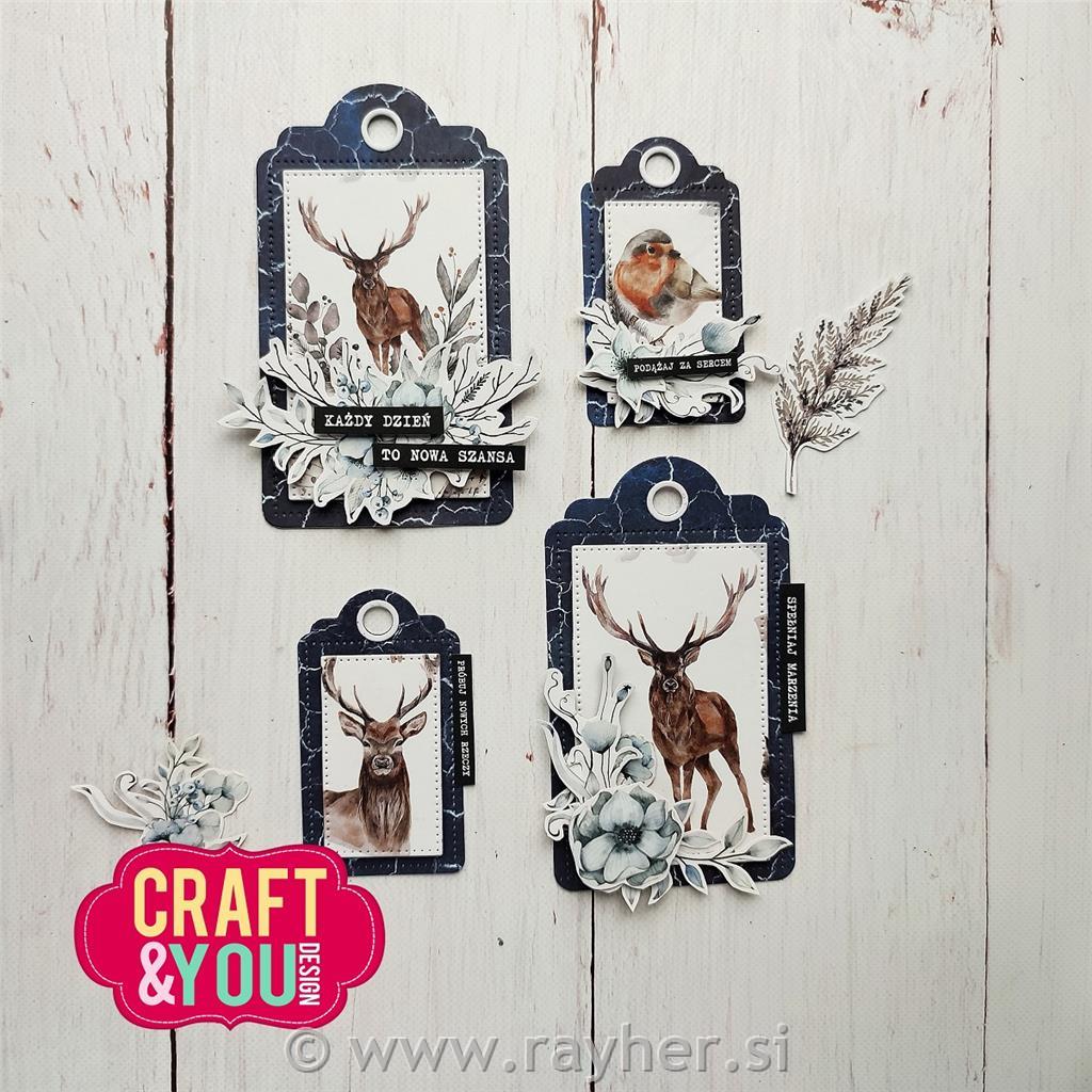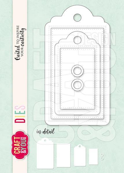 V paketu je pet rezalnih šablon, približne mere: največji tag : 10,6 x 6 cm , manjši tag :4x7cm