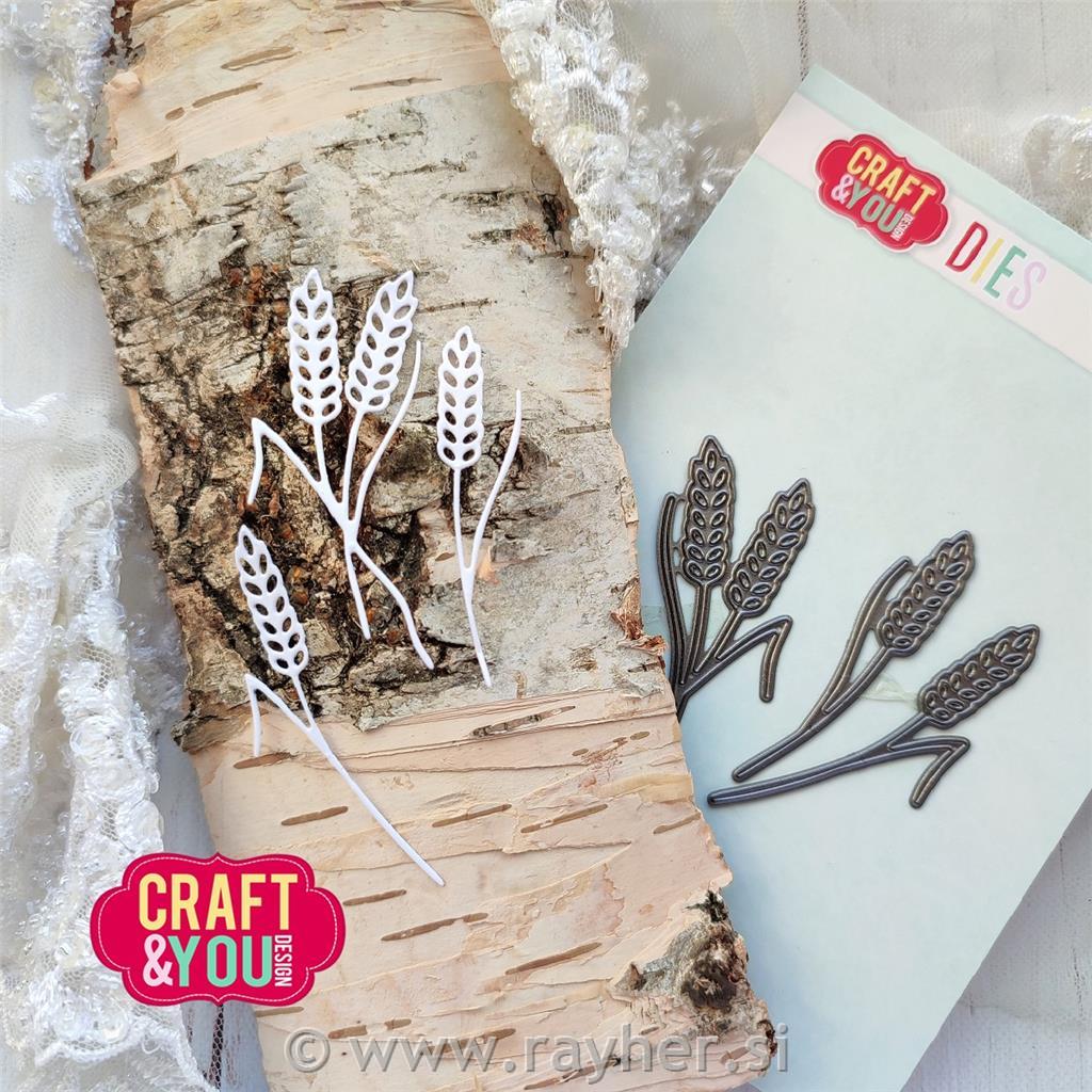 V paketu so tri rezalne šablone, približne mere: žitno klasje 1: 6,4x3,4 cm; žitno klasje 2: 5,6x1,2 cm; žitno klasje 3: 6x1,6 cm